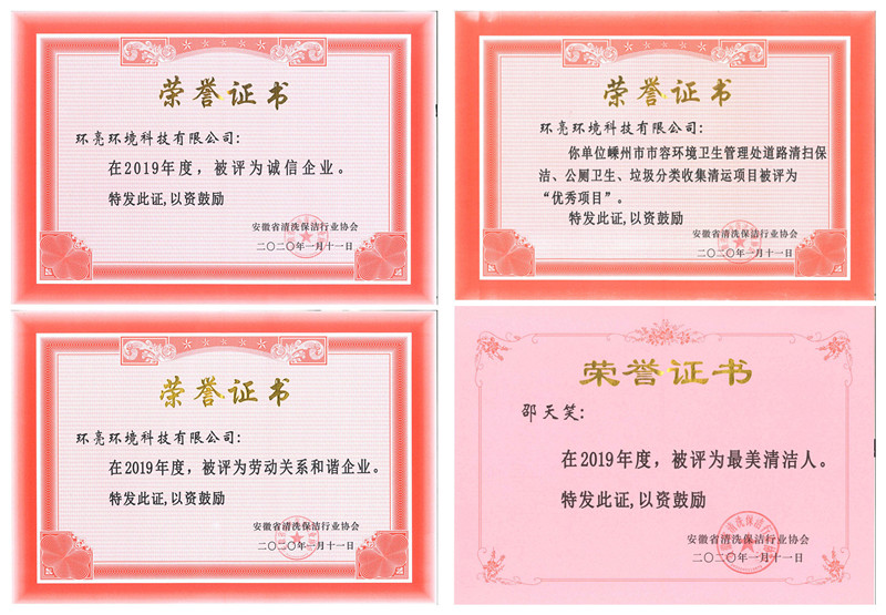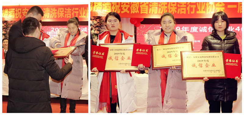 在此次大會上,安徽省清洗保潔行業協會對我司2019年度的工作較為認可,我司作為協會的理事單位,榮獲 “2019年度誠信企業”、“勞動關系和諧企業”。此外,我司“嵊州市市容環境衛生管理處道路清掃保潔、公廁衛生、垃圾分類收集清運項目”被評為“優秀項目”,公司員工邵天笑被評為“最美清潔人”。
