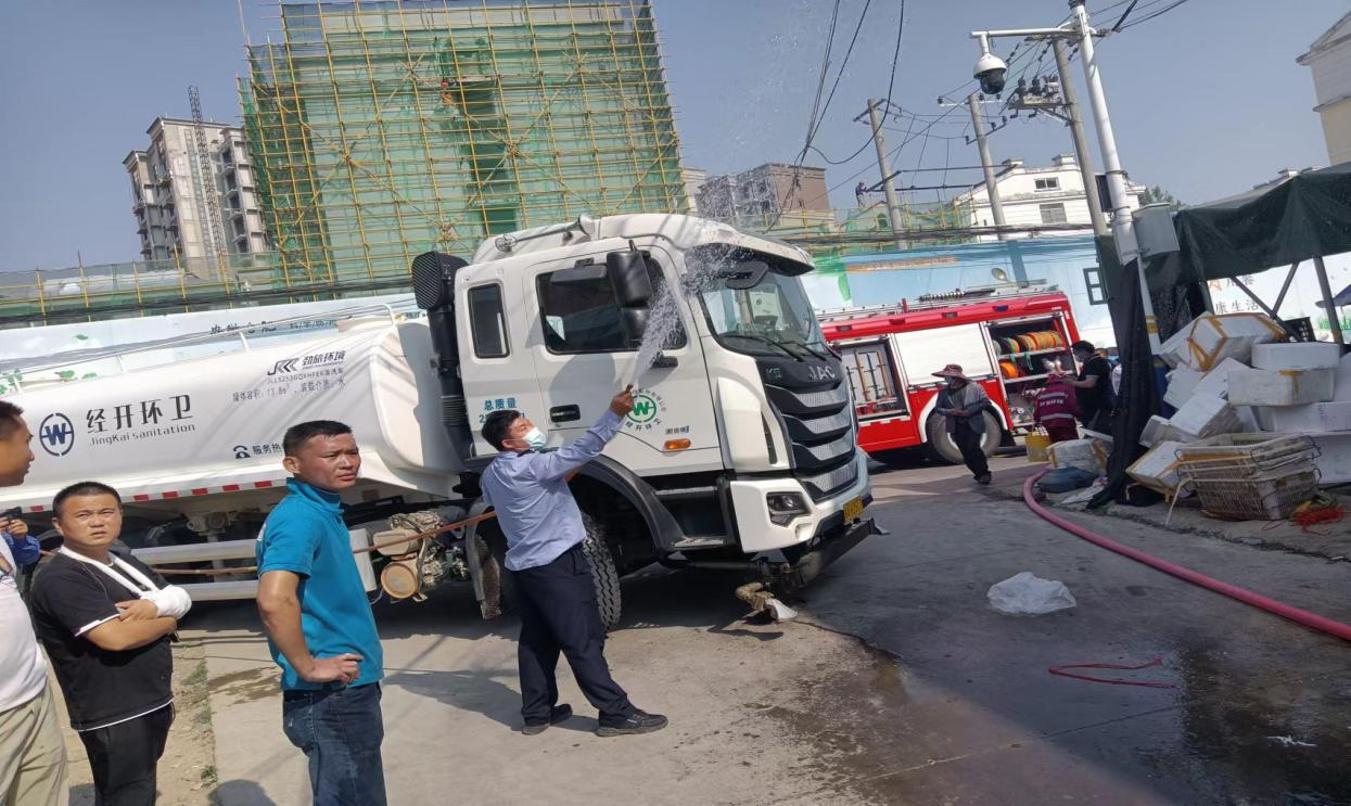 2022年5月24日上午在高劉鎮北街農貿市場,過路人員把抽完的香煙頭隨手丟棄,卻不曾想把堆放在旁邊的泡沫箱給點燃了。隨著火勢越來越嚴重,為了盡最大可能減少財產損失和人力傷亡,環亮環境科技有限公司接到通知后立馬奔赴火災現場支援。