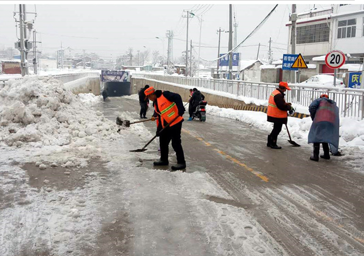 針對雨雪天氣作業情況,環亮環境科技有限公司爐橋分公司、明光項目部作了嚴密的安排部署,對融雪劑、車輛、工具進行一一落實,迅速組織環衛工人和設備投入到了繁重的除雪工作中,確保市民和車輛的出行安全。